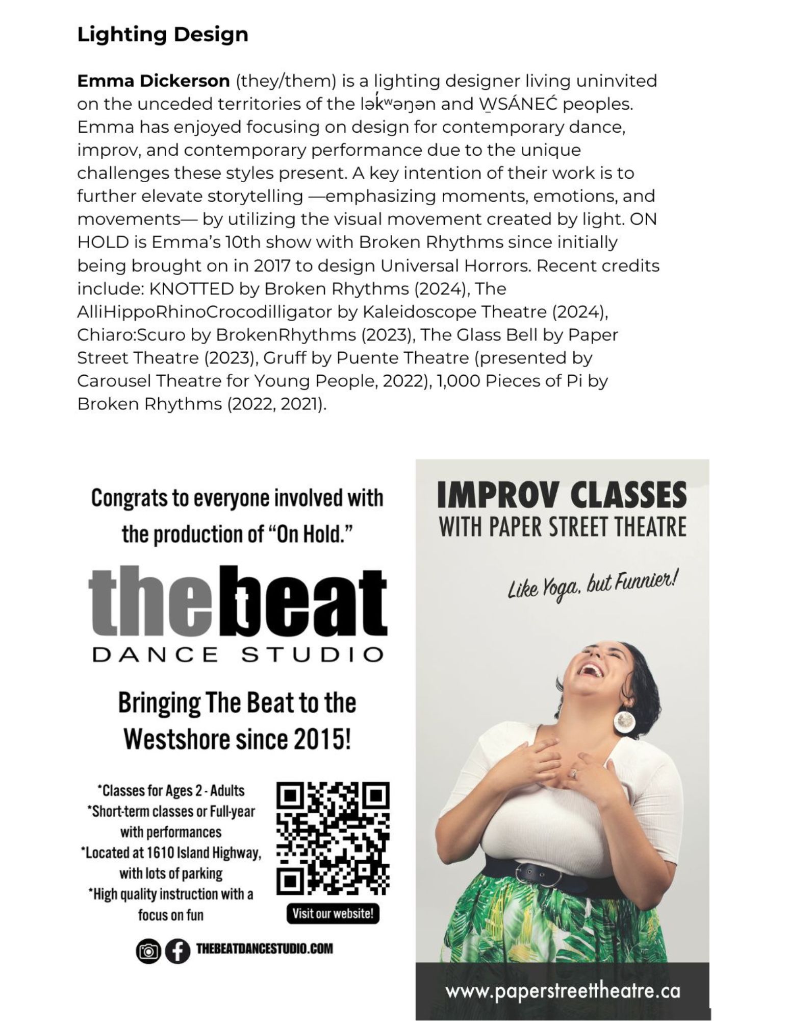 On Hold Program Please enjoy Broken Rhythms production of ‘On Hold’ ON HOLD proDownload Share this: Click to share on X (Opens in new window) X Click to share on Facebook (Opens in new window) Facebook Like Loading...