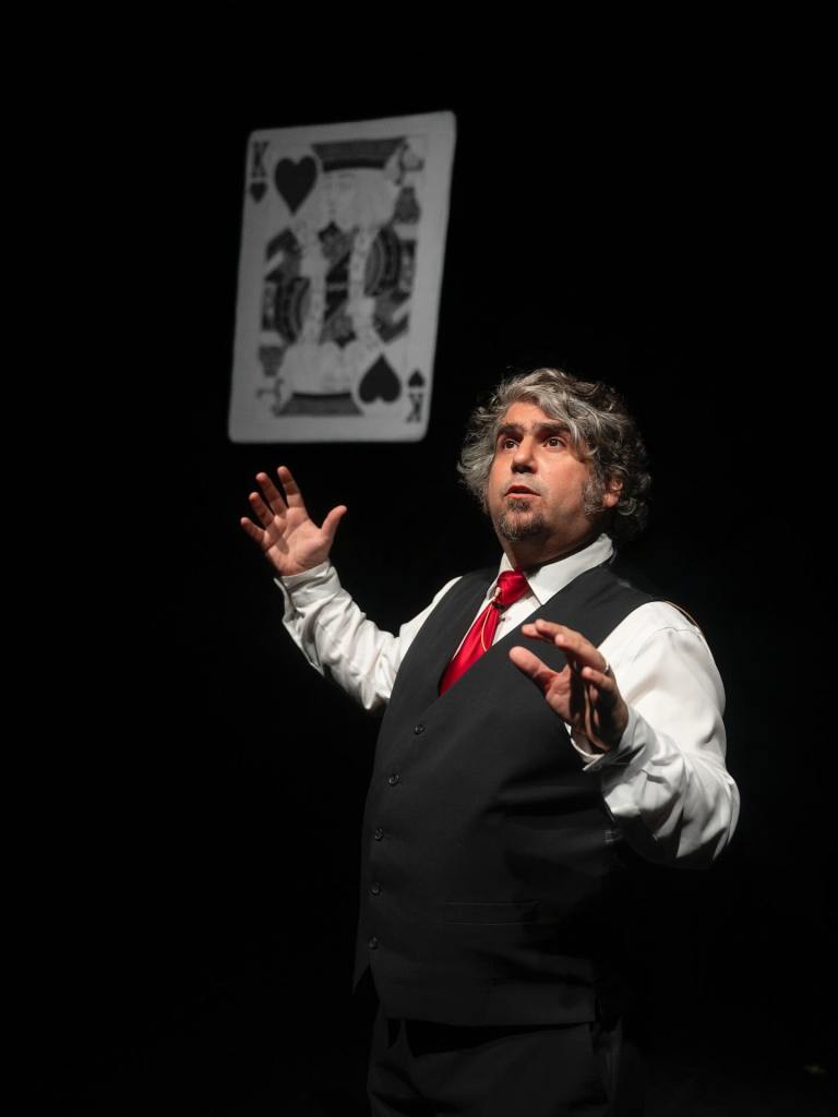 Dave Morris, Artistic Director of Paper Street Theatre, is an improviser, storyteller, instructor, and magician. Known for his award-winning work and engaging stage presence, he blends memory techniques with heartfelt storytelling to create performances that are both entertaining and deeply personal.
