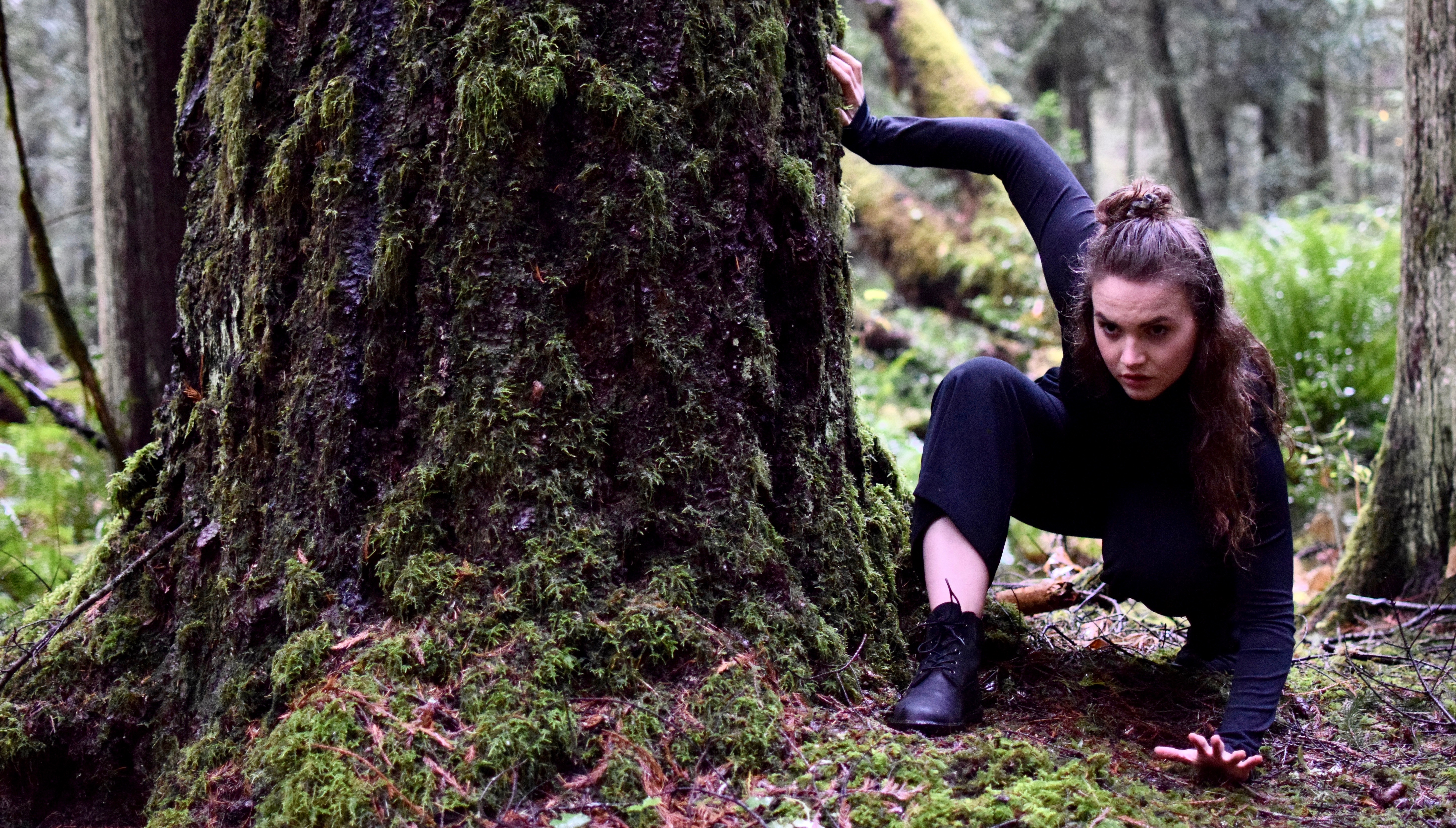 Filming this piece in the forest was significant. To me, the woods have an important duality. Despite the fact that the tall trees can instill fear or loneliness, they also are comforting and rejuvenating. I feel grounded amongst the forest. Like the woods, my work has provided stability and clarity, in a year where I should feel uncertain.